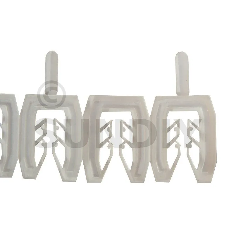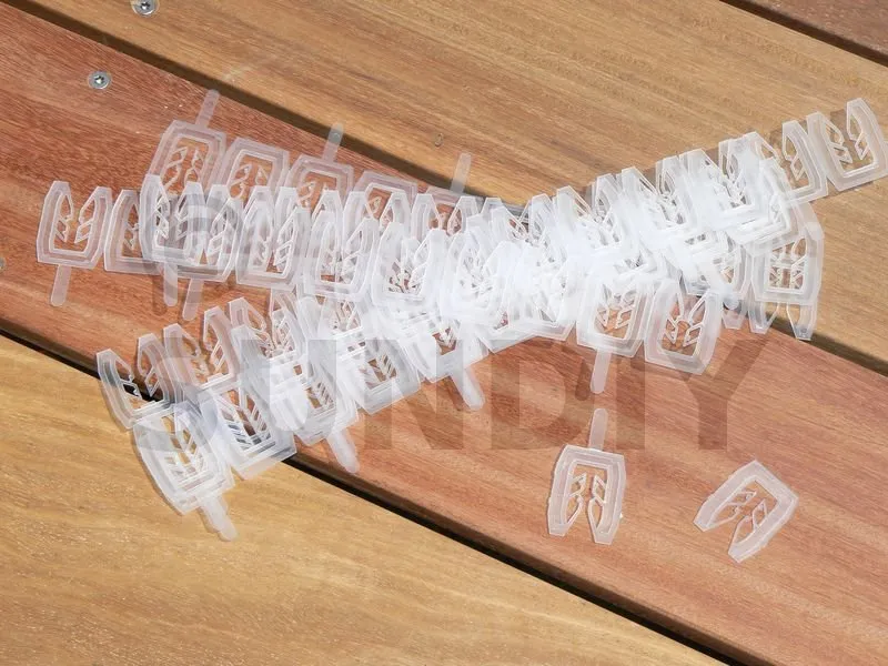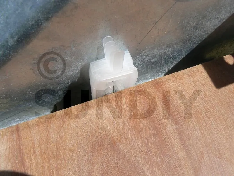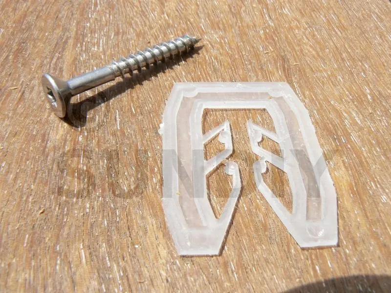 Chaque cale comporte un peigne intérieur (ou fourchette) qui permet de clipser la cale, ou un ensemble de cales, sur une vis. On peut clipser efficacement sur des vis, ou tirefond, ou tige filetée, de diamètres allant de 3 à 9 mm. Ainsi, la cale reste sur son support même si celui-ci bouge. La moitié des cales comporte une petite languette qui vous permettra de l’insérer et la pousser facilement sous un espace restreint, sous une lambourde par exemple.