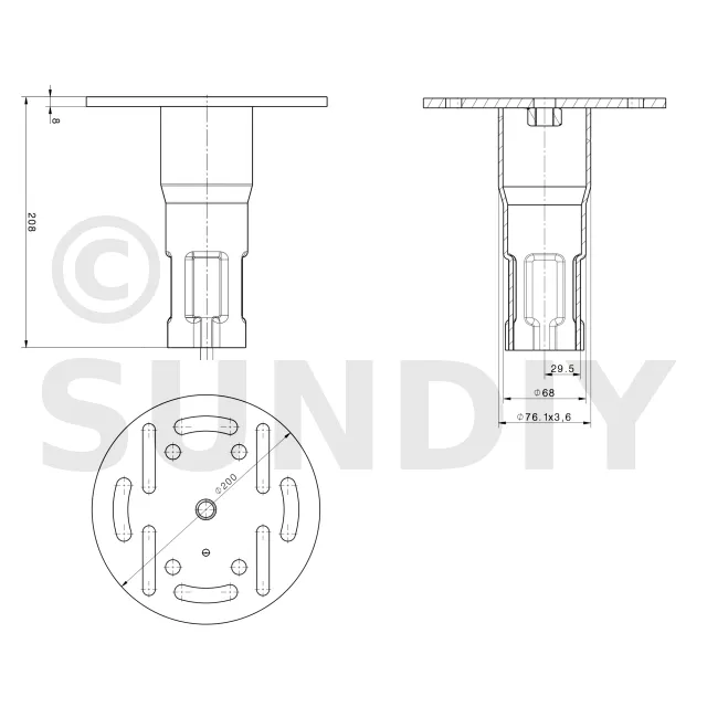 - Embout circulaire : L’embout circulaire peut être conçu pour s’adapter à une structure particulière, pour recevoir la base d’une vis ou pour faciliter la fixation d’autres composants.