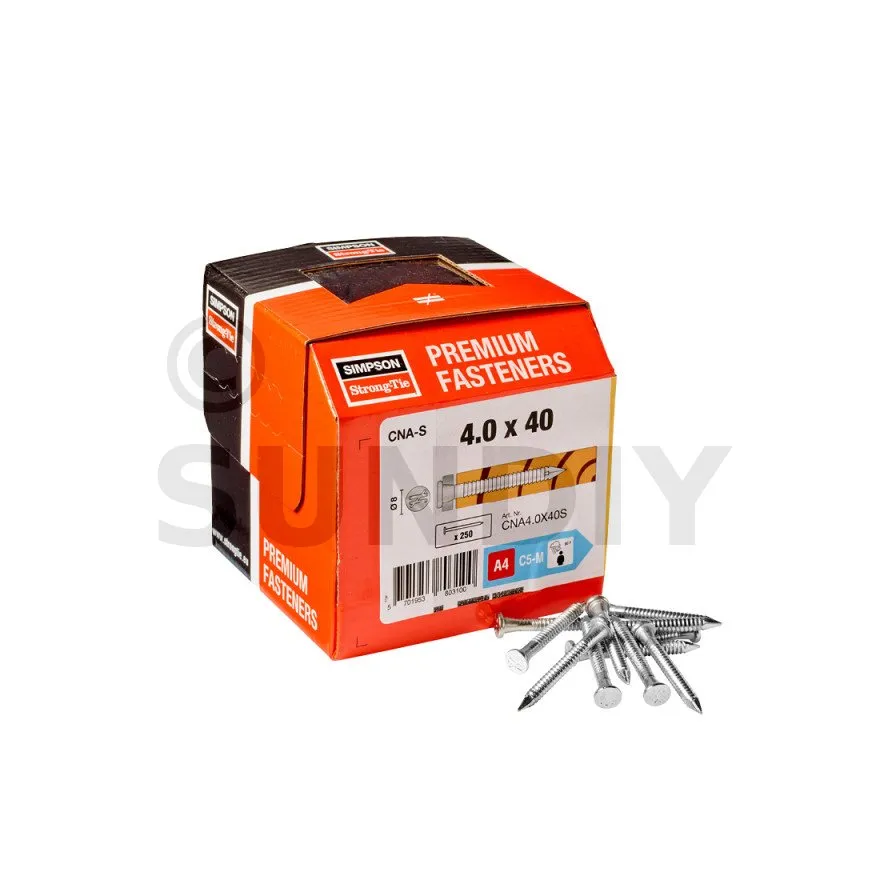 Les pointes annelées inox CNA-S sont préconisées pour les assemblages structurels des connecteurs inox Simpson Strong-Tie. Tous nos essais ont été réalisés avec ce type de pointes. Pour plus de traçabilité sur les chantiers, elles sont estampillées ≠, une garantie de qualité sans équivalent.