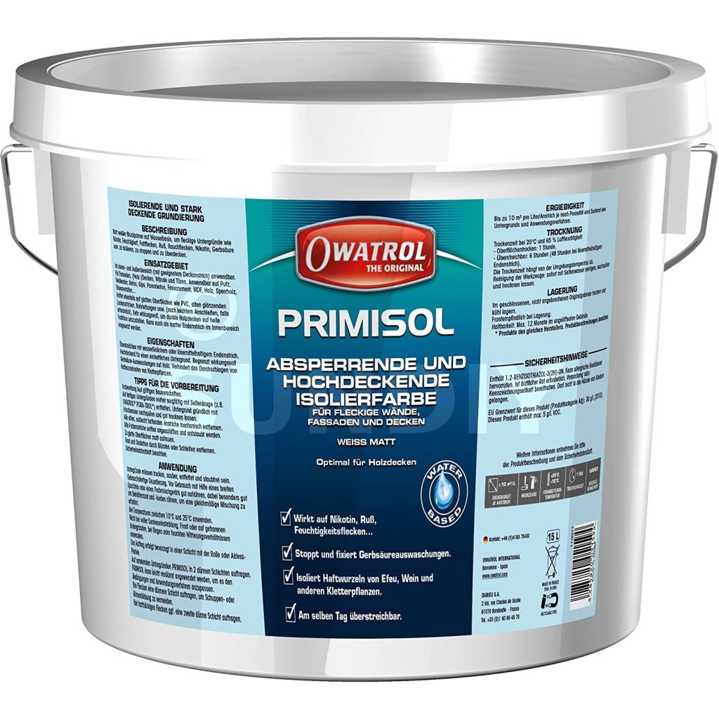 Sec hors poussière : 1 heure - Recouvrable : 6 heures par une finition acrylique et 48 heures par une finition glycéro.