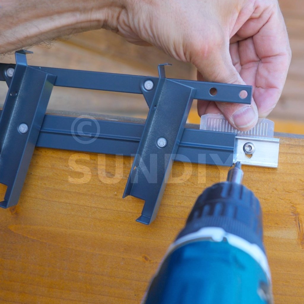 Les mécanismes constituent la base du SUNDIY. Ils permettent de couvrir une hauteur (ou profondeur) de 47,5cm, et jusqu’à une largeur de 100cm (conseillé) avec des lames en bois, ou 200cm avec des lames aluminium.