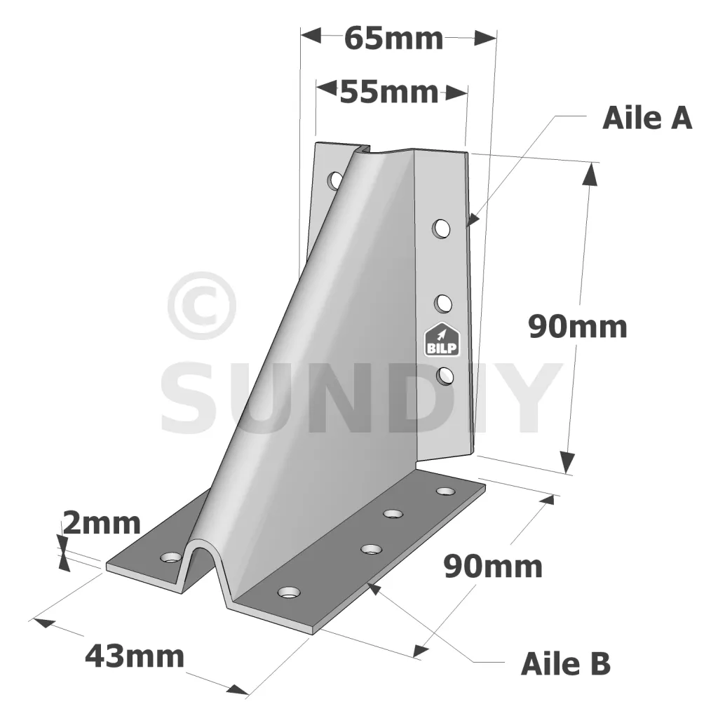 - MatériauAcier galvanisé S250GD + Z275 suivant NF EN 10346