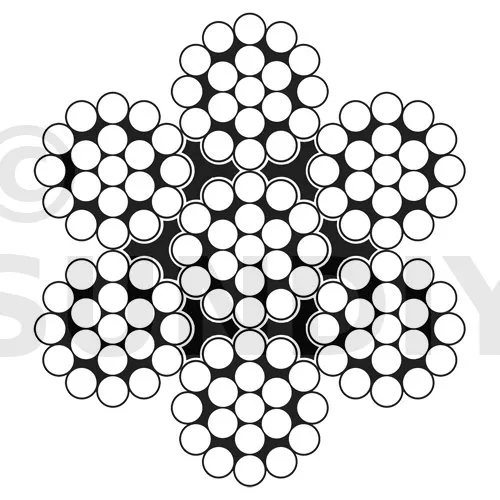 Câble constitué de 7 torons, chacun composé de 19 fils fins torsadés ensemble. Cette configuration confère au câble une grande flexibilité, lui permettant de se courber et de se manipuler facilement sans se casser ni se dégrader.