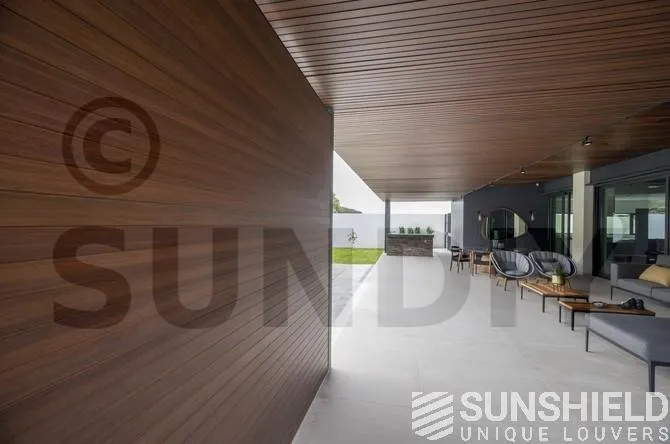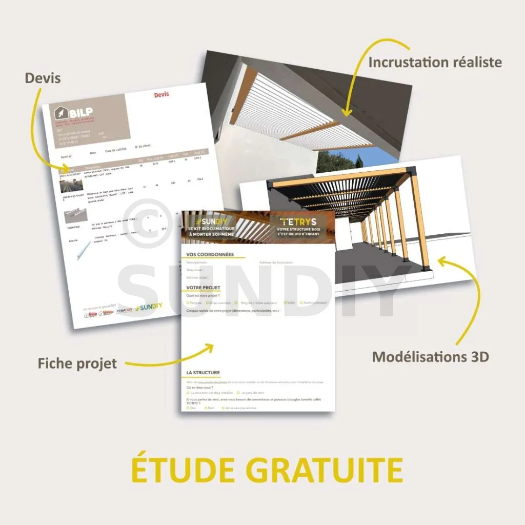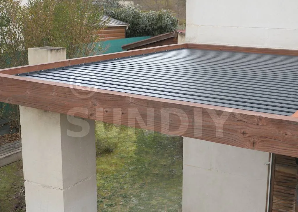 Les lames en bois offrent un rendu chaleureux et accueillant, idéal pour créer une atmosphère naturelle. Elles s’intègrent parfaitement dans les environnements extérieurs végétalisés et apportent une touche artisanale unique. Chez SUNDIY, nous utilisons principalement du bois Douglas, reconnu pour sa durabilité et son origine locale, issue de forêts gérées durablement.
