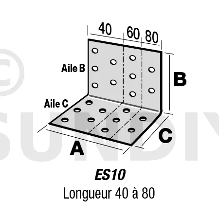 | Références | Largeur | Profondeur | Hauteur | Ep | Aile B | Aile C | Aile B | Aile C | CNA4.0x35 | CNA4.0x50 | CNA4.0x35 | CNA4.0x50 | |