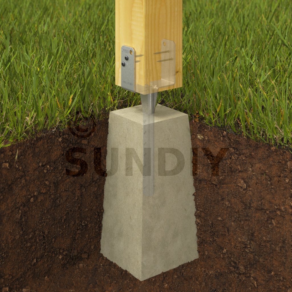- Fixer le pied de poteau sur le poteau.