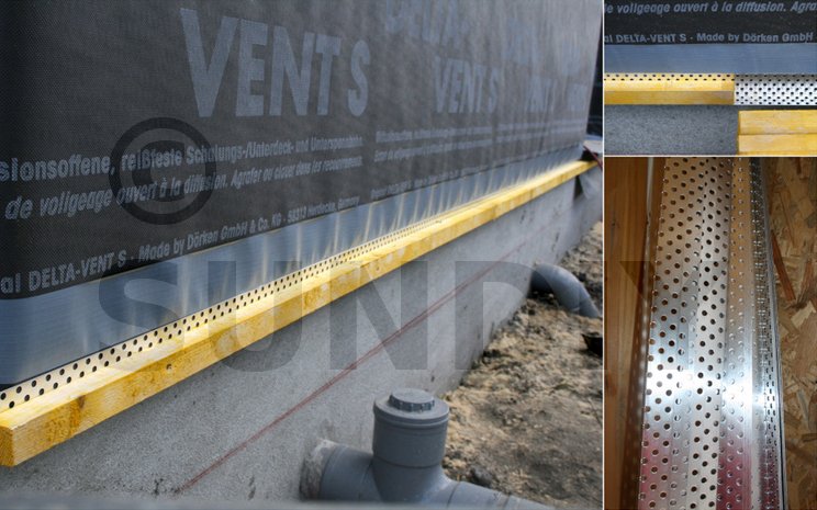- Assure l’entrée d’air au niveau du raccord bas d’un parement extérieur de construction à ossature bois.