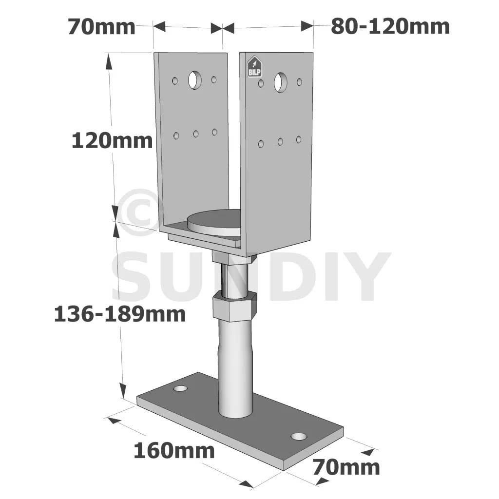 Pied de poteau réglable (hauteur et largeur) à fixer avec des ancrages - Réf. PVDB80G