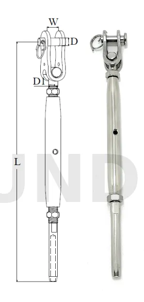 Tendeurs de fourche avec embout pour câble, mâchoire fermée, AISI 316