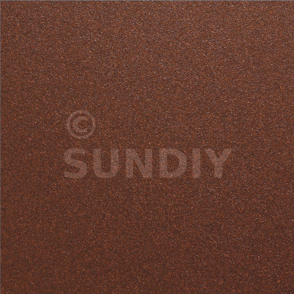 Effet corten (rouille), texturé pour plus de réalisme. Coloris évoquant aussi un bois exotique.