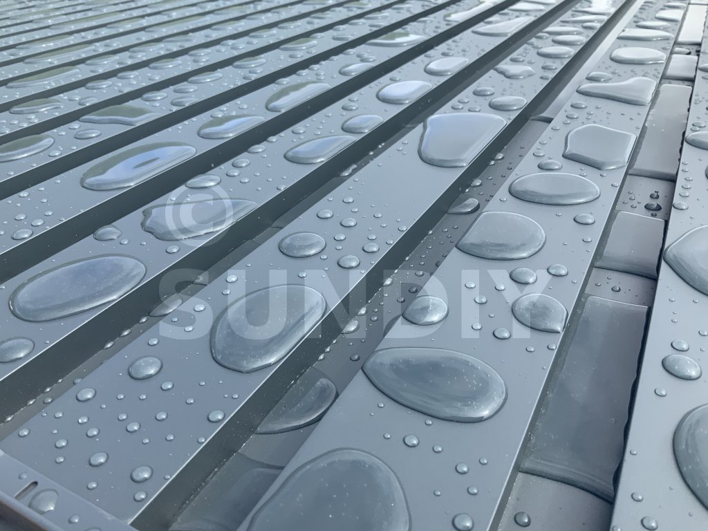 - Profilé collecteur à recouvrement permettant d’obtenir une bonne étanchéité (évacuation de l’eau aux extrémités),