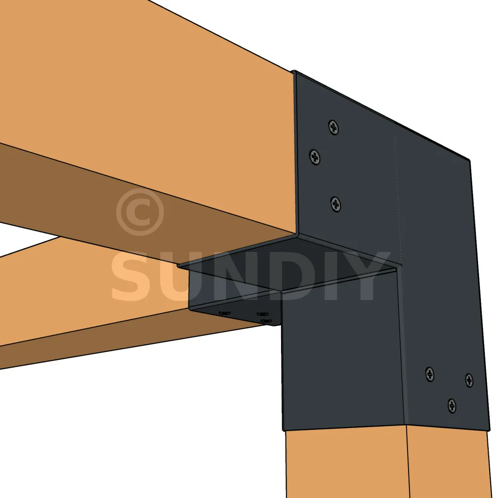Il est utilisé dans un angle extérieur. Ce connecteur va permettre de raccorder une poutre 90x90mm perpendiculairement à une poutre 90x90mm, le tout étant supporté par un poteau vertical 90x90mm.