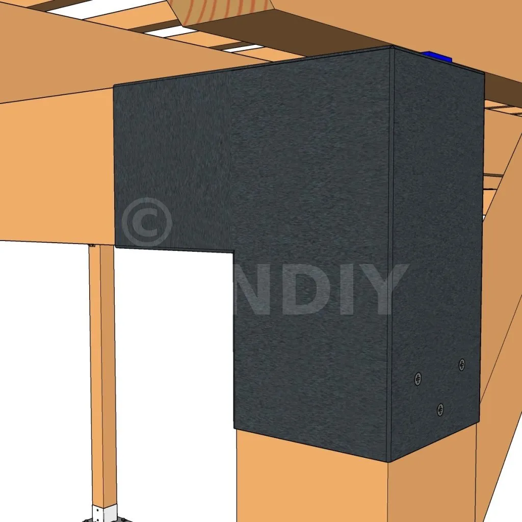 Il est utilisé dans un angle extérieur. Ce connecteur va permettre de raccorder une grosse poutre 120x120mm perpendiculairement à une autre poutre ou à un poteau vertical 120x120mm.