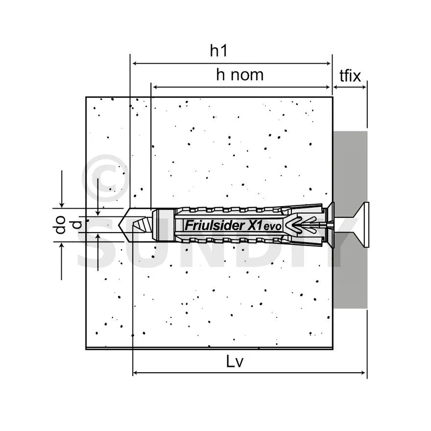 - Prof. d’ancrage nominal, hnom standard30mm