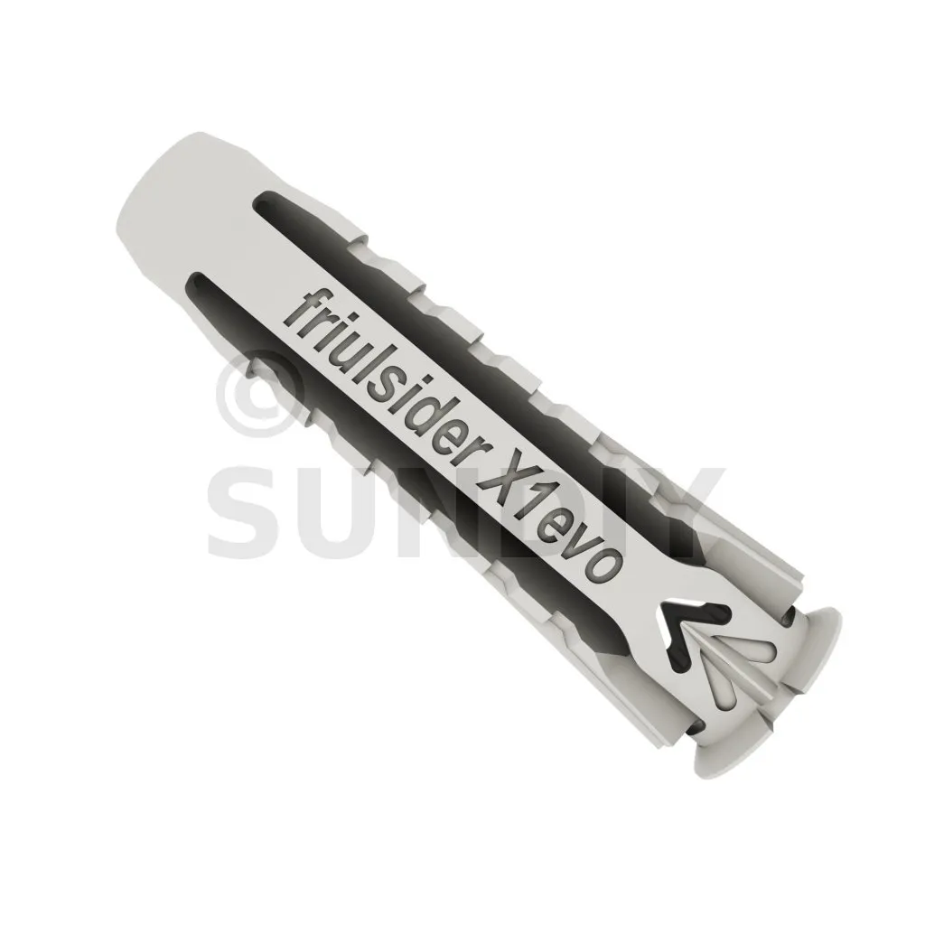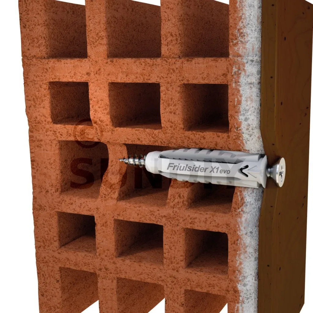 La cheville nylon universelle X1 evo, permet une fixation optimale d’éléments sur tous types de supports plein ou creux, notamment sur plaque de plâtre. Avec tous types de vis : vis filetage bois, vis filetage pas métrique. Avec un maintien large et stable grâce au 4 segments formant une rosace en arrière face du support lors de la pose.