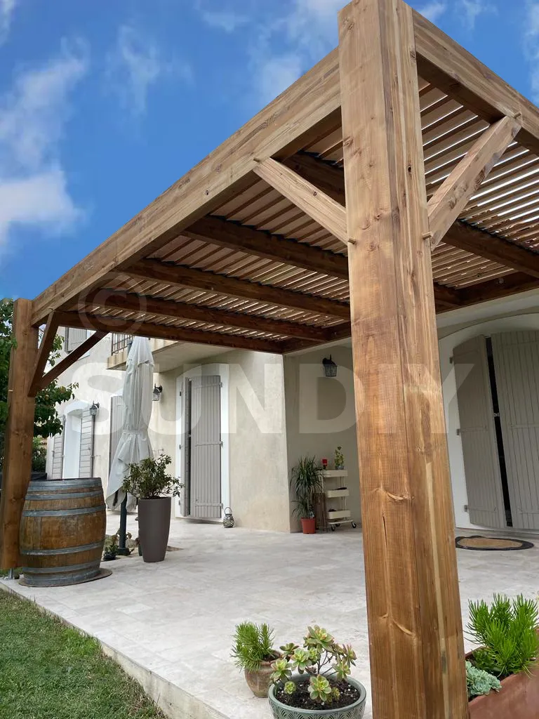 Nous voulions une pergola 100% BOIS avec des lames orientables. Nous sommes RAVIS d'être tombés sur SUNDIY, une solution hyper abordable à poser soi-même. Je réfléchis avec ma femme à compléter notre construction avec une partie brise-vue pour améliorer davantage le confort de la terrasse.