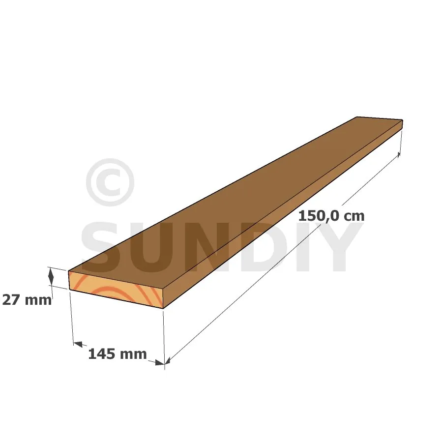 Lame BOIS Douglas - épaisseur : 27mm, largeur : 140mm, longueur 1,50m - Bords droits