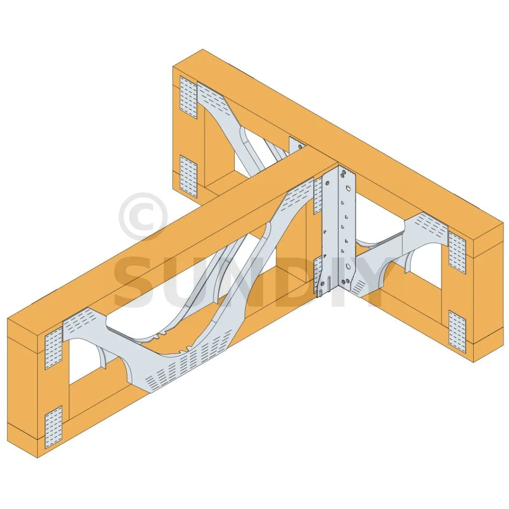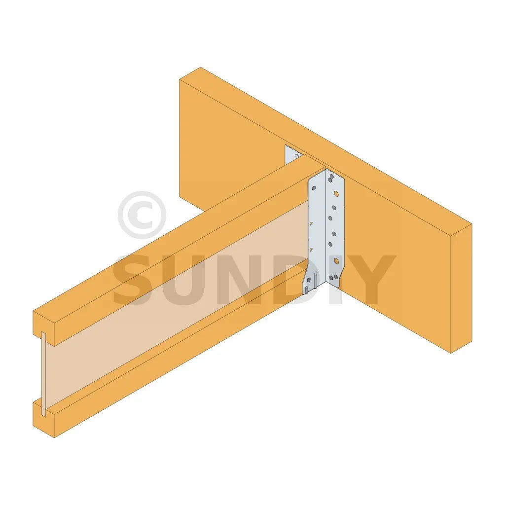 8. Pour une installation nécessitant une reprise de charge au soulèvement, si la poutrelle entrante est une poutrelle en I, des raidisseurs d’âme sont nécessaires. (La taille du raidisseur d’âme et les exigences d’installation doivent être conformes aux spécifications du fabricant de poutrelles en I pertinentes). Remplissez tous les trous ronds et triangulaires avec la fixation appropriée.