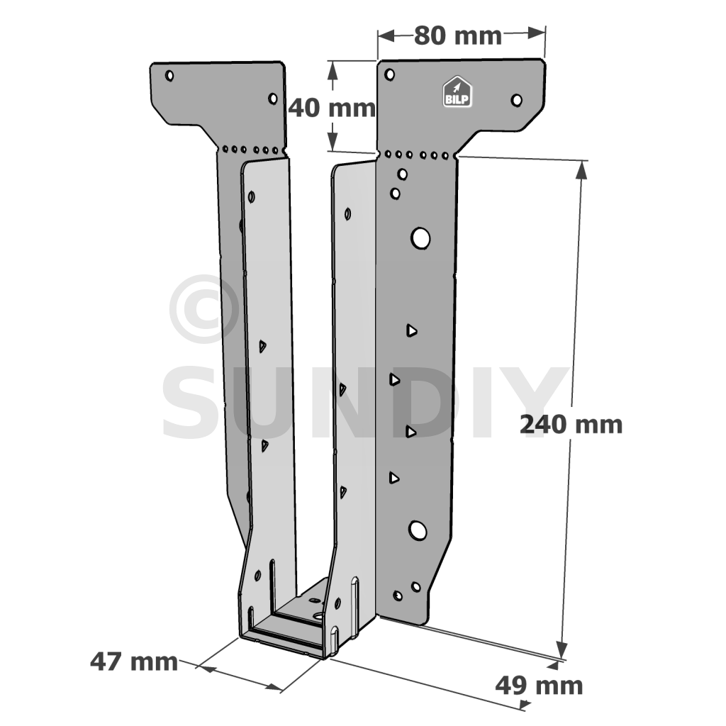 - Étrier fourni avec ses brides supérieures droites, pliables sur chantier afin de s’adapter à toutes les hauteurs de solives,