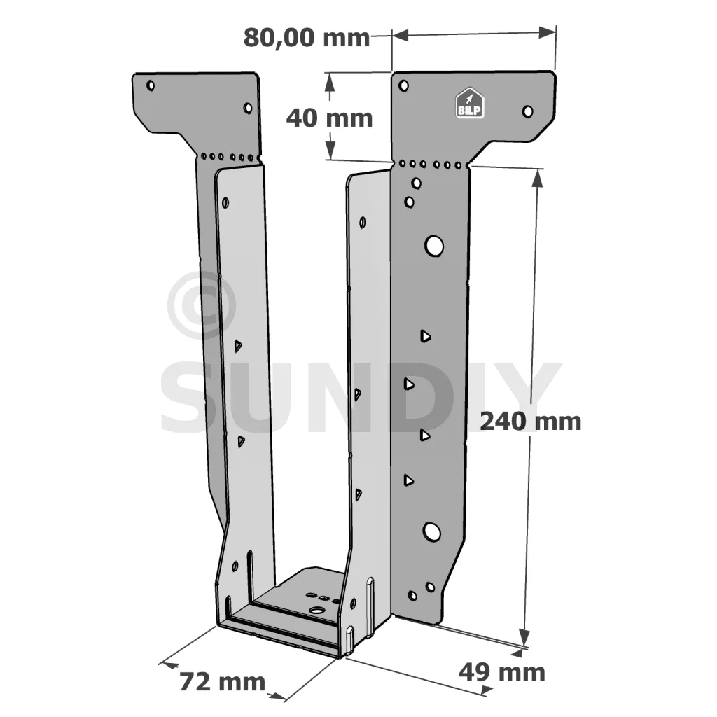 - Étrier fourni avec ses brides supérieures droites, pliables sur chantier afin de s’adapter à toutes les hauteurs de solives,