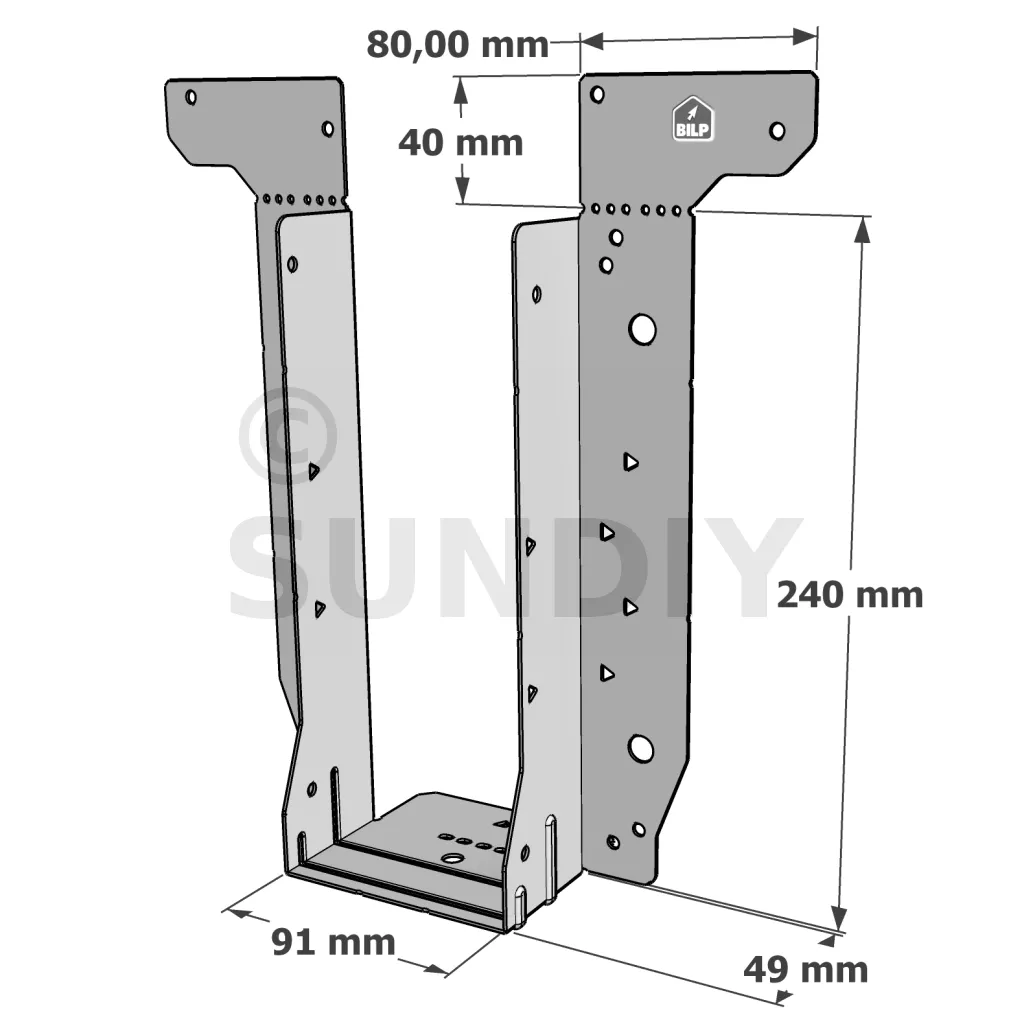 - Étrier fourni avec ses brides supérieures droites, pliables sur chantier afin de s’adapter à toutes les hauteurs de solives,