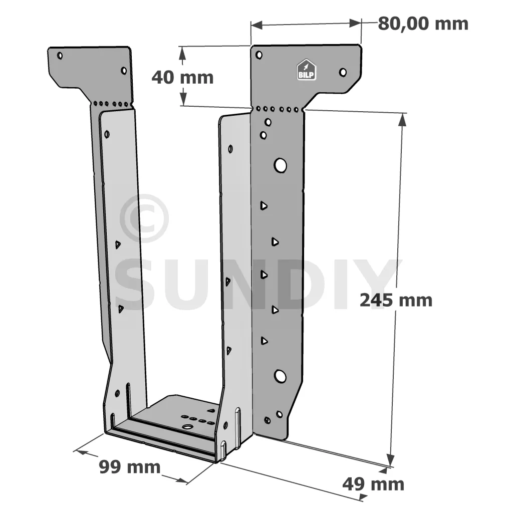 - Étrier fourni avec ses brides supérieures droites, pliables sur chantier afin de s’adapter à toutes les hauteurs de solives,