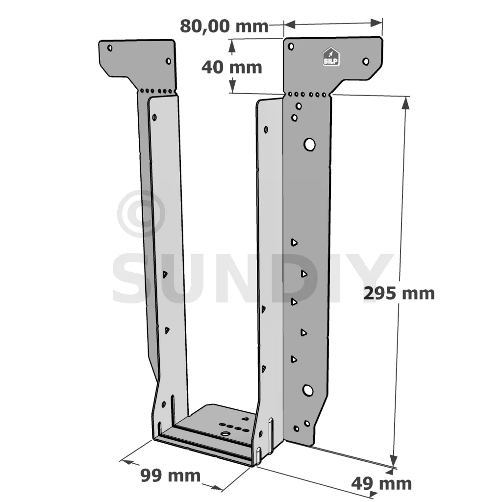 - Étrier fourni avec ses brides supérieures droites, pliables sur chantier afin de s’adapter à toutes les hauteurs de solives,