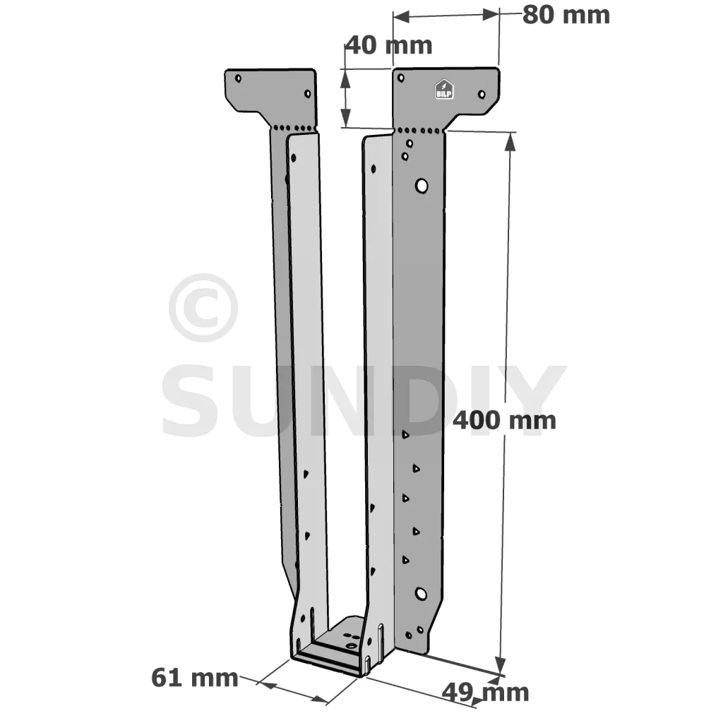 - Étrier fourni avec ses brides supérieures droites, pliables sur chantier afin de s’adapter à toutes les hauteurs de solives,