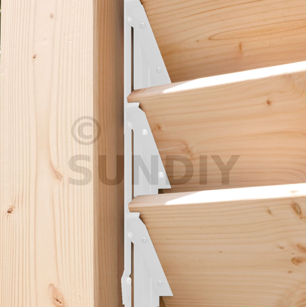 Les mécanismes du système SUNDIY sont pourvus de perforations conçues pour la fixation des lames par le dessus. Cette méthode de fixation est indispensable pour les lames en BOIS, elle garantit leur maintien en place.