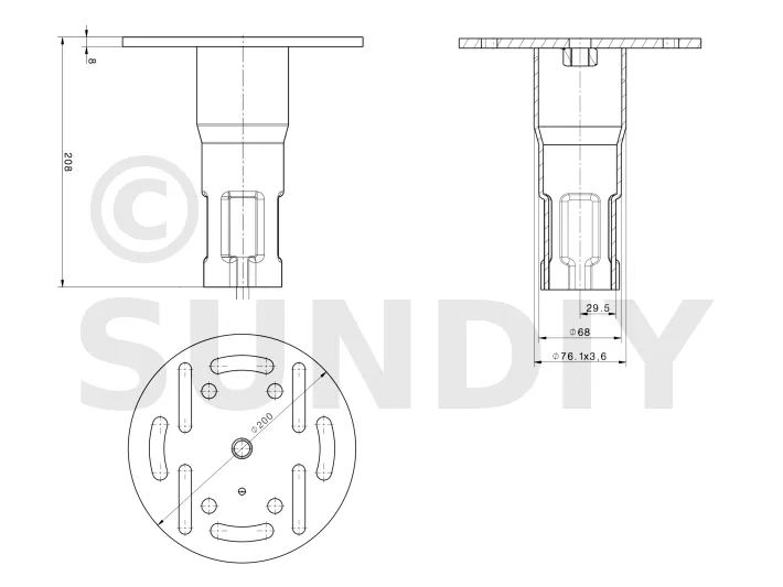 - Embout circulaire : L’embout circulaire peut être conçu pour s’adapter à une structure particulière, pour recevoir la base d’une vis ou pour faciliter la fixation d’autres composants.