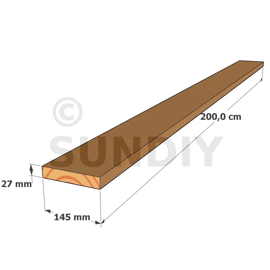 Lame BOIS Douglas - épaisseur : 27mm, largeur : 140mm, longueur 2m - Bords droits - Réf. SND-L-27-2000
