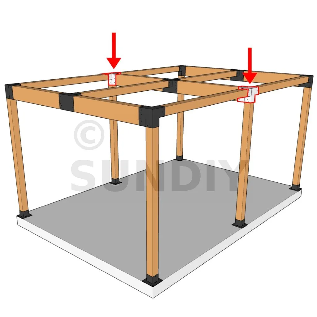 Il permet de raccorder deux poutres 120x120mm perpendiculairement à une grosse poutre 240x120mm, le tout étant supporté par un poteau vertical 120x120mm.