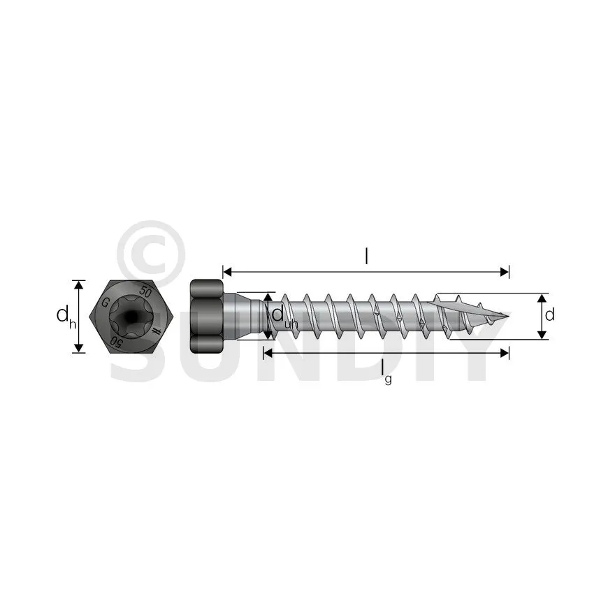 - Tête hexagonale : parfait maintien de la plaque acier sur bois grâce à sa tête large,