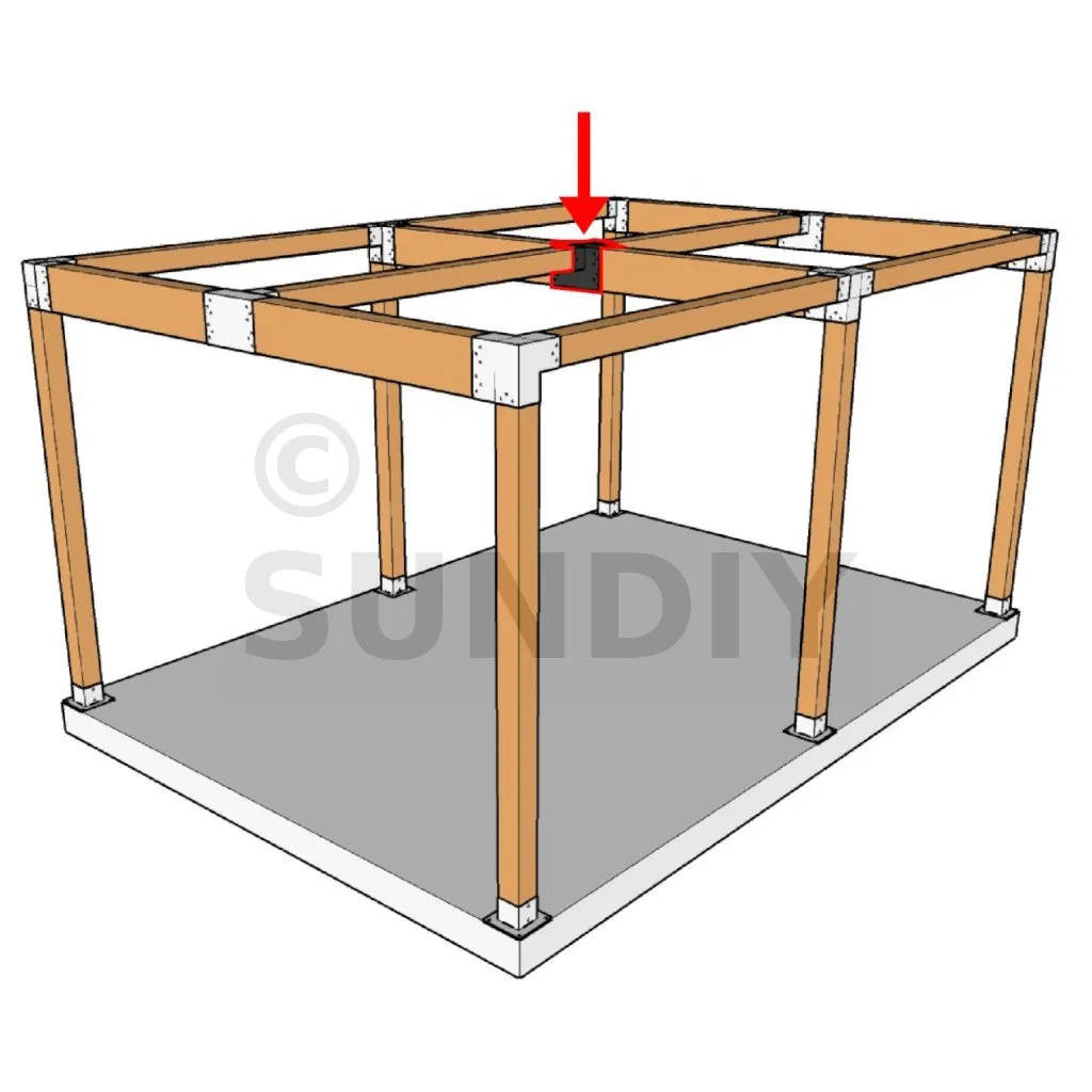 Il permet de raccorder deux poutres 120x120mm perpendiculairement à une grosse poutre 240x120mm, SANS être soutenu par un poteau vertical.