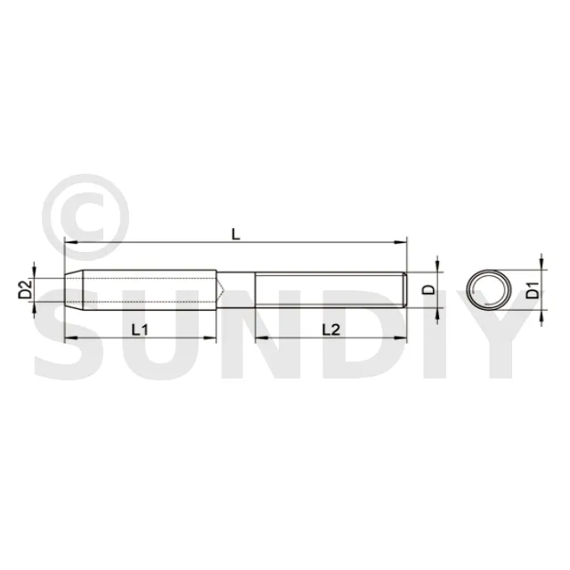 Tige filetée droite à sertir : Elle a un filetage à droite, c’est-à-dire que pour visser la tige, il faut tourner dans le sens horaire (vers la droite).