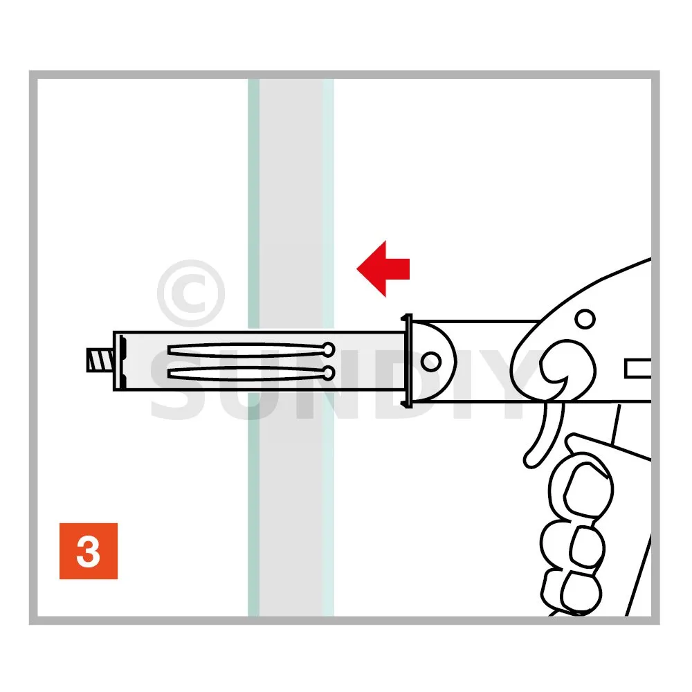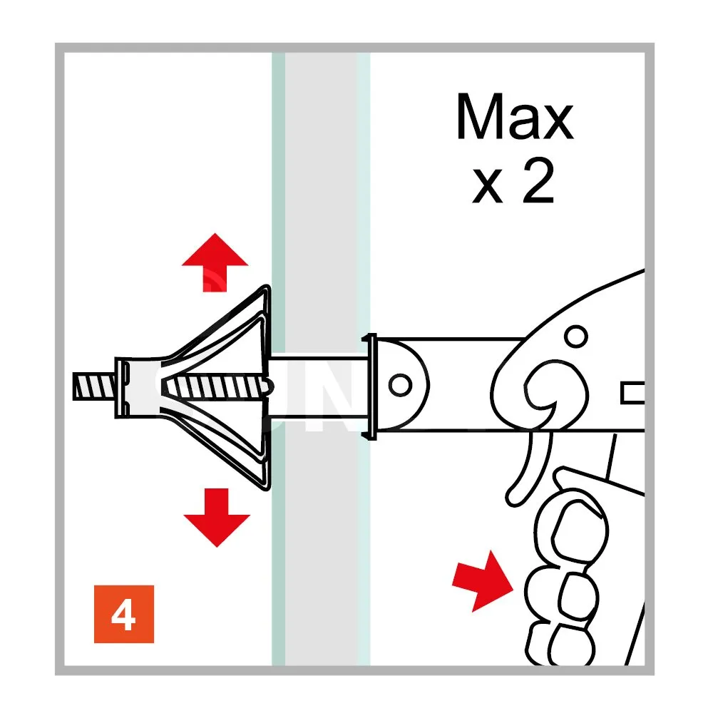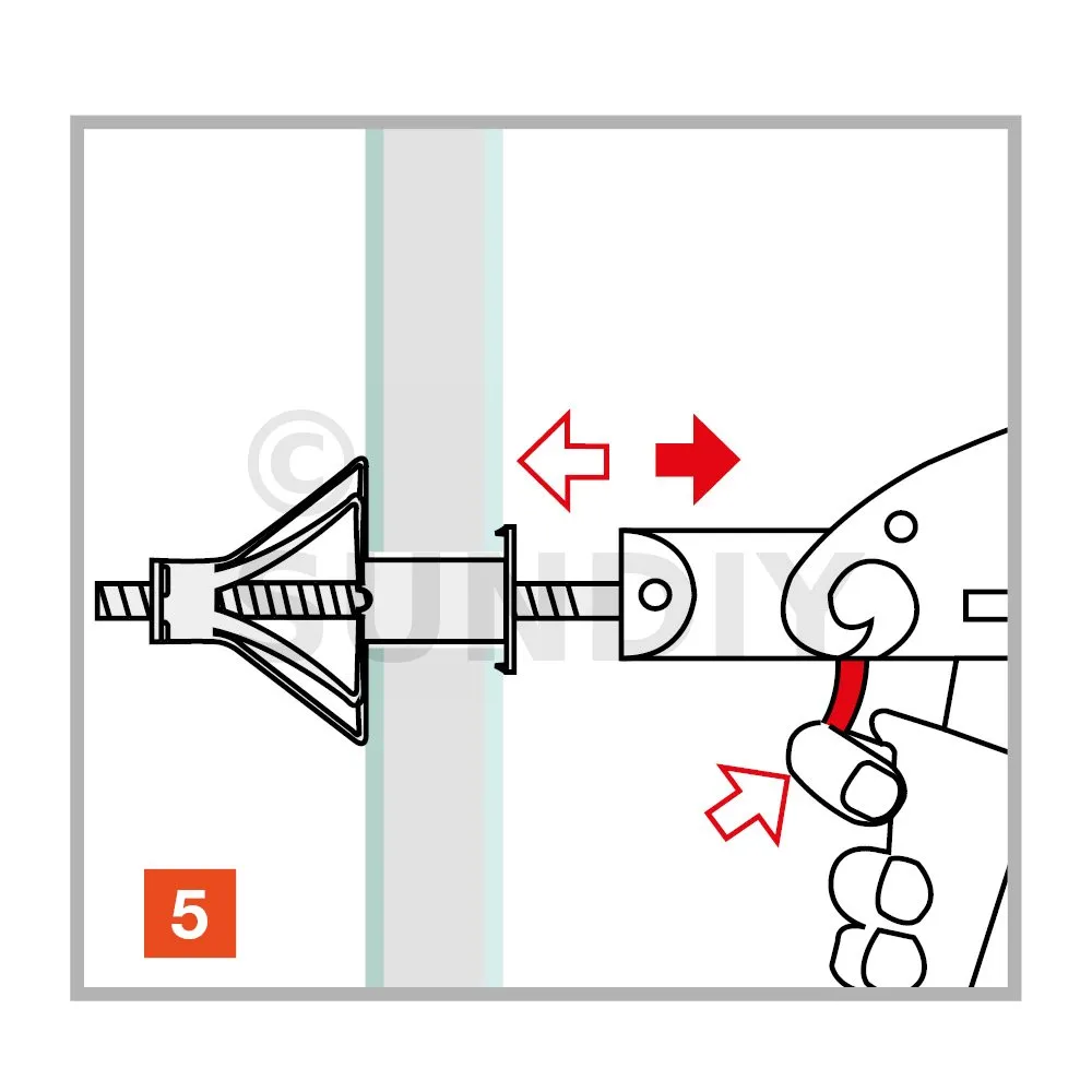 La cheville est disposée dans le perçage sur le support avec une pince dédiée, l’action de la pince permet l’expansion et le verouillage de la cheville contre le support.