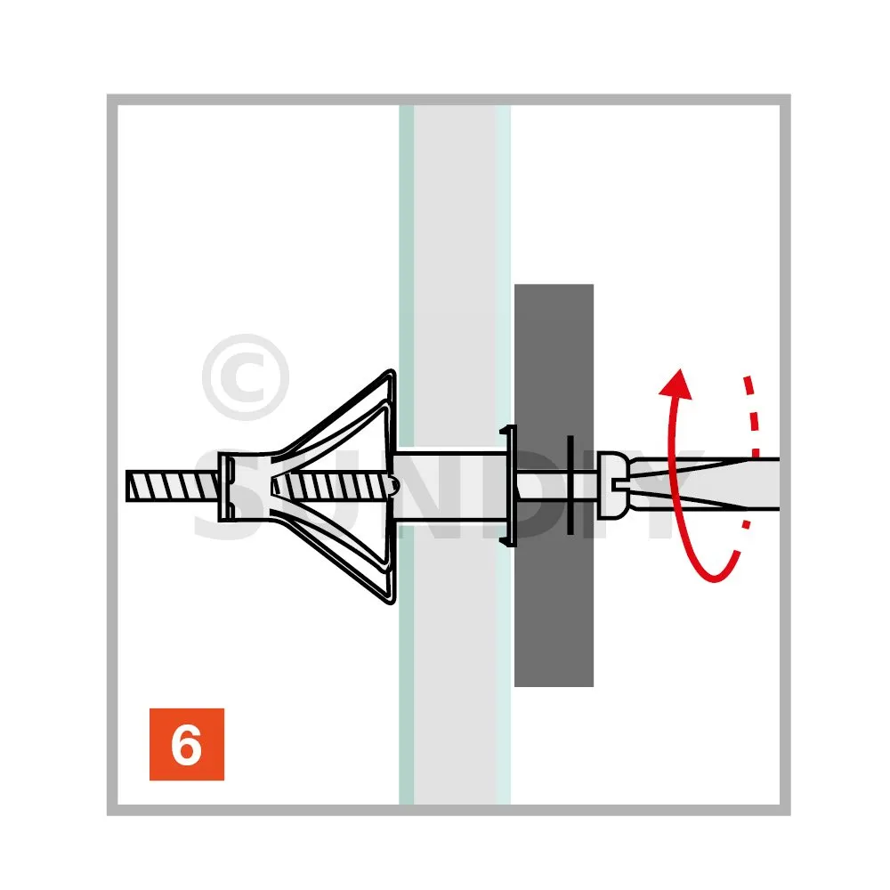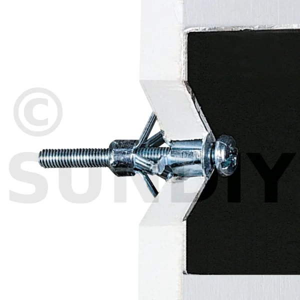 La cheville métallique à expansion TMC avec vis pas métrique prémontée, permet la fixation d’éléments sur plaque de plâtre ou cloison sèche, ou tout support creux dont la cavité correspond aux dimensions de la cheville.