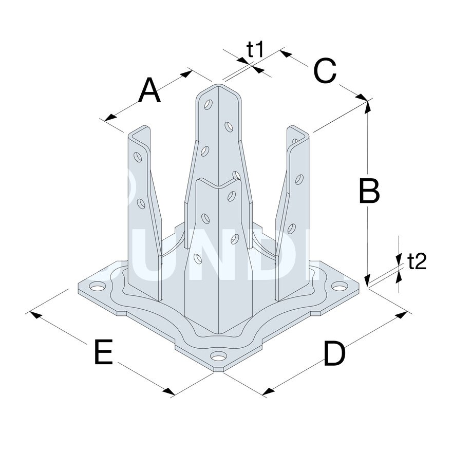 Pied de poteau carré ouvert pour jardin - Finition GALVANISEE