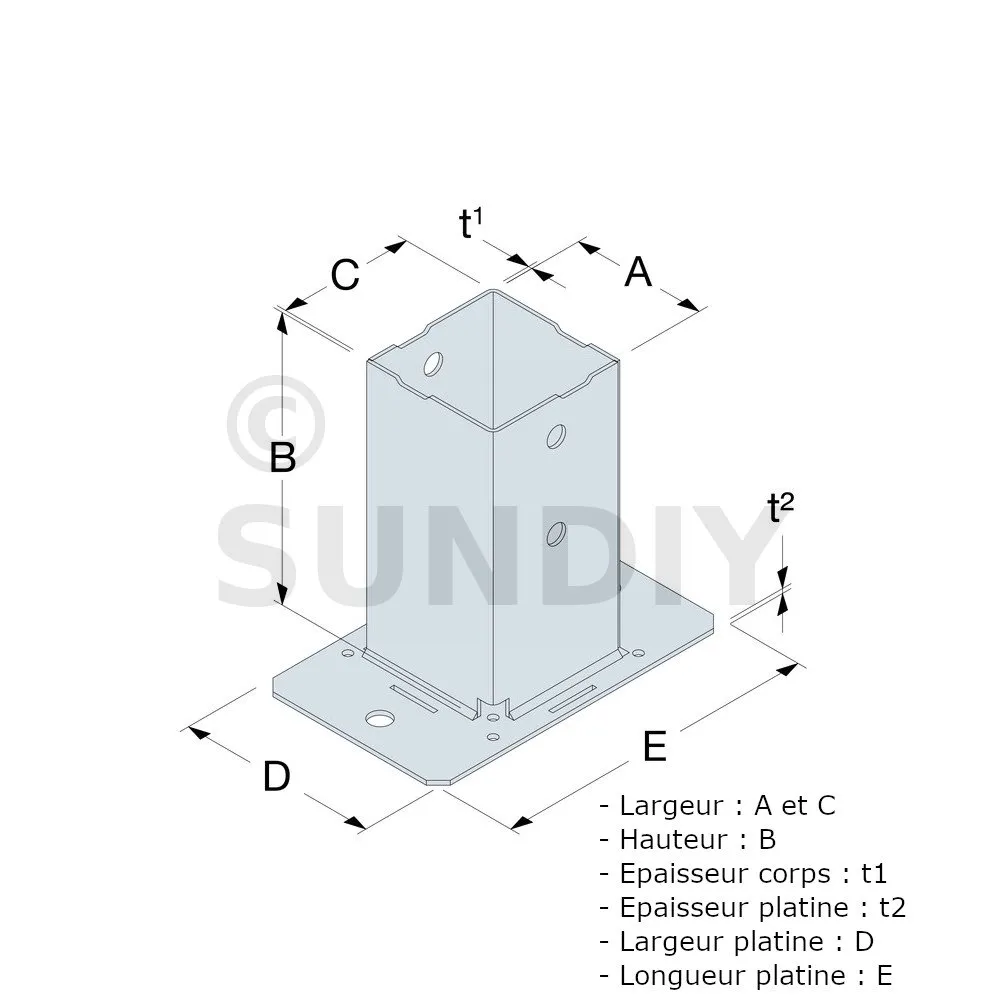 Pied de poteau pour muret et bord de dalle - Finition GALVANISEE