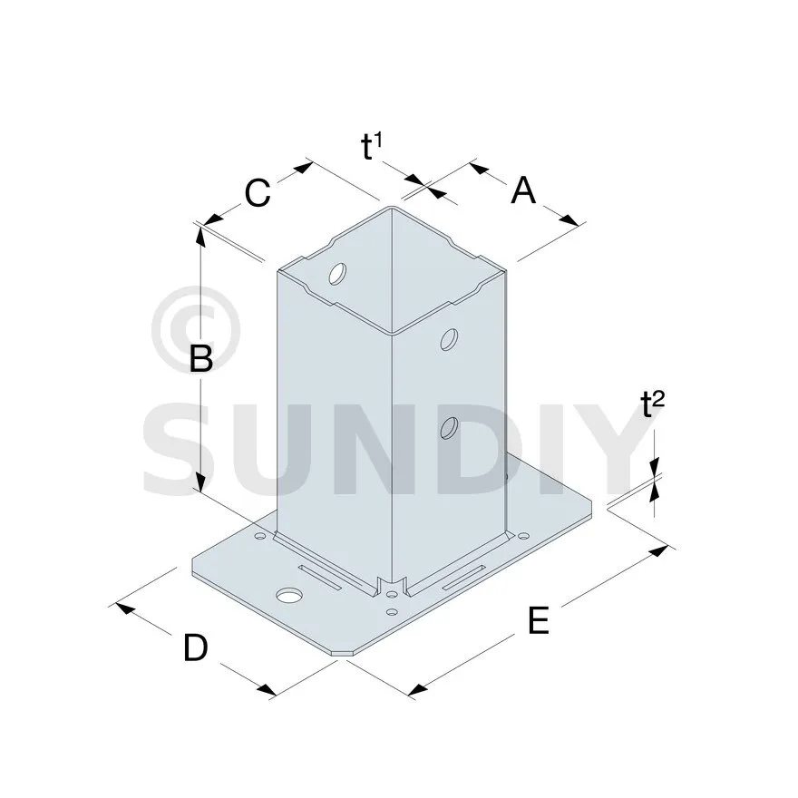 Le pied de poteau carré sur platine PPJBM est 100% fabriqué en France. Il est préconisé dans la réalisation de clôtures et structures légères de jardin, sur supports étroits pour des bois de 70 ou 90 mm. Grâce à sa platine rectangulaire et à des perçages centrés, le pied de poteau PPJBM est spécialement adapté à une utilisation sur muret ou bord de dalle.