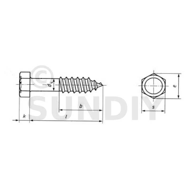 - Normes similaires : La norme ISO correspondante est ISO 885 pour les vis à bois avec tête hexagonale.