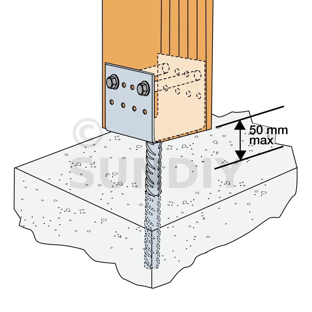 La distance entre la platine et le béton doit être de 50 mm maxi.