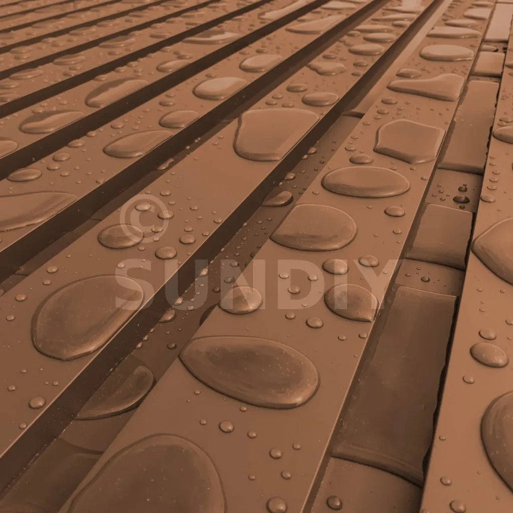 Effet corten (rouille), texturé pour plus de réalisme. Coloris évoquant aussi un bois exotique.