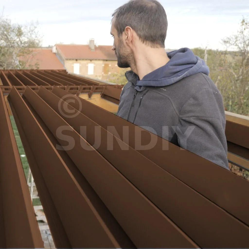 Chez SUNDIY, nous proposons une gamme de lames en aluminium pour votre pergola bioclimatique. Que ce soit pour un de nos kit pergola bioclimatique ou des pièces détachées, notre expertise se reflète dans la qualité et la durabilité de nos produits.