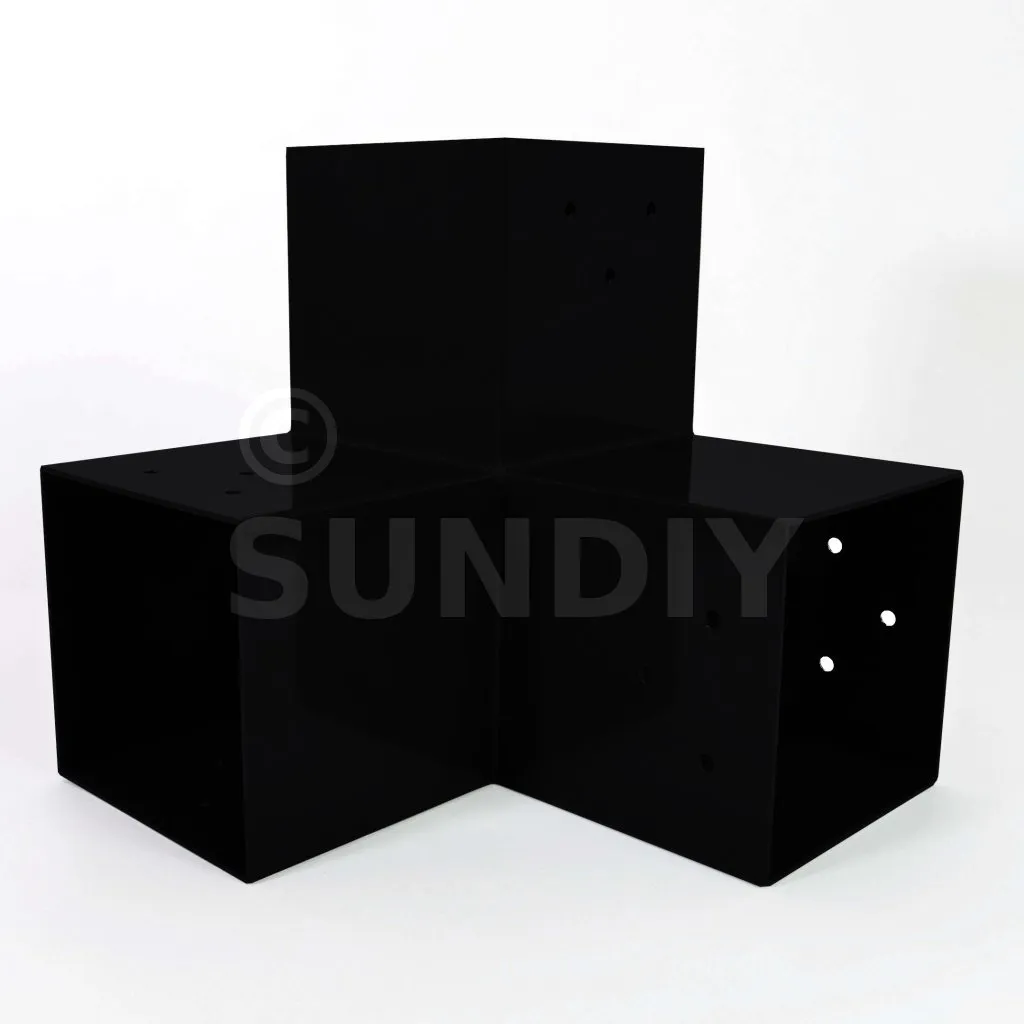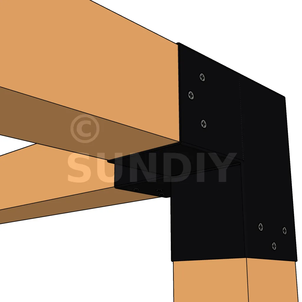 Il est utilisé dans un angle extérieur. Ce connecteur va permettre de raccorder une poutre 90x90mm perpendiculairement à une poutre 90x90mm, le tout étant supporté par un poteau vertical 90x90mm.