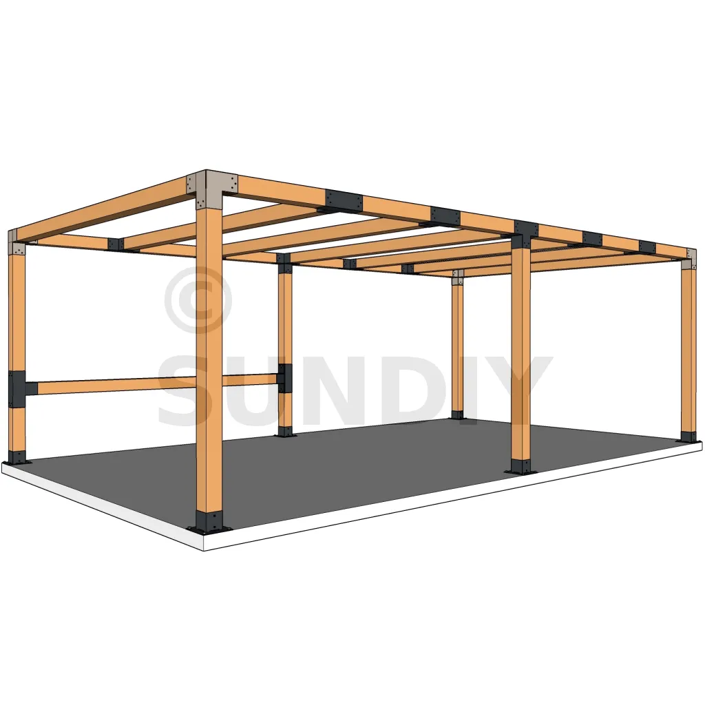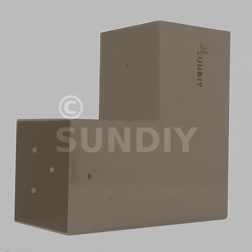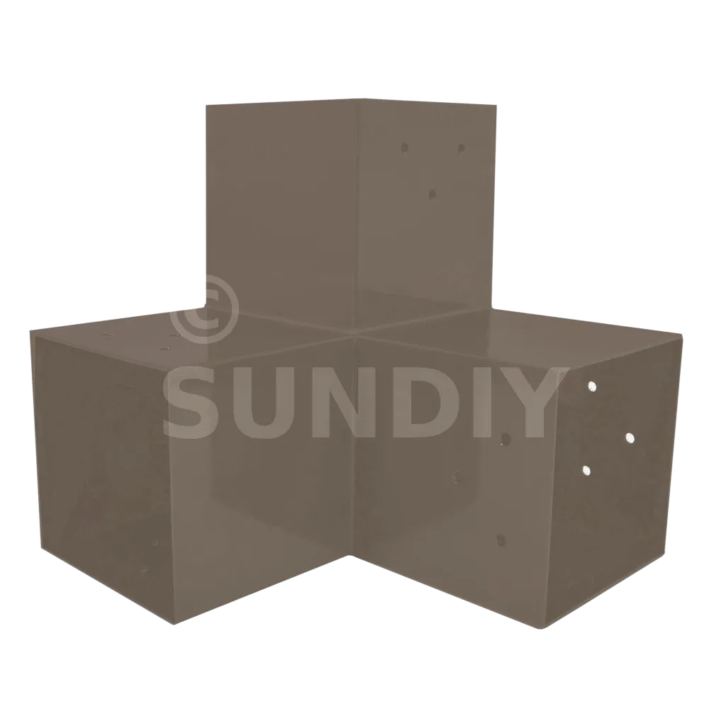 Il est utilisé dans un angle extérieur. Ce connecteur va permettre de raccorder une grosse poutre 120x120mm perpendiculairement à une poutre 120x120mm, le tout étant supporté par un poteau vertical 120x120mm.