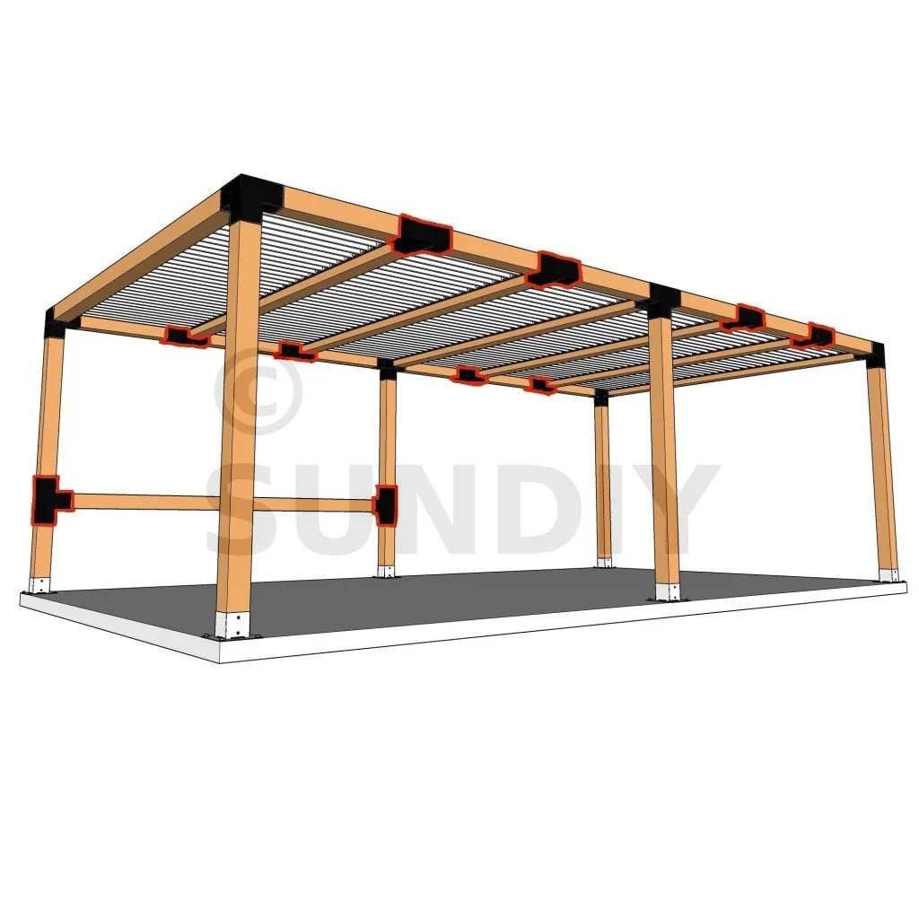 Il permet également la connexion d’une longue poutre de 120x120mm à un poteau intermédiaire de 120x120mm.