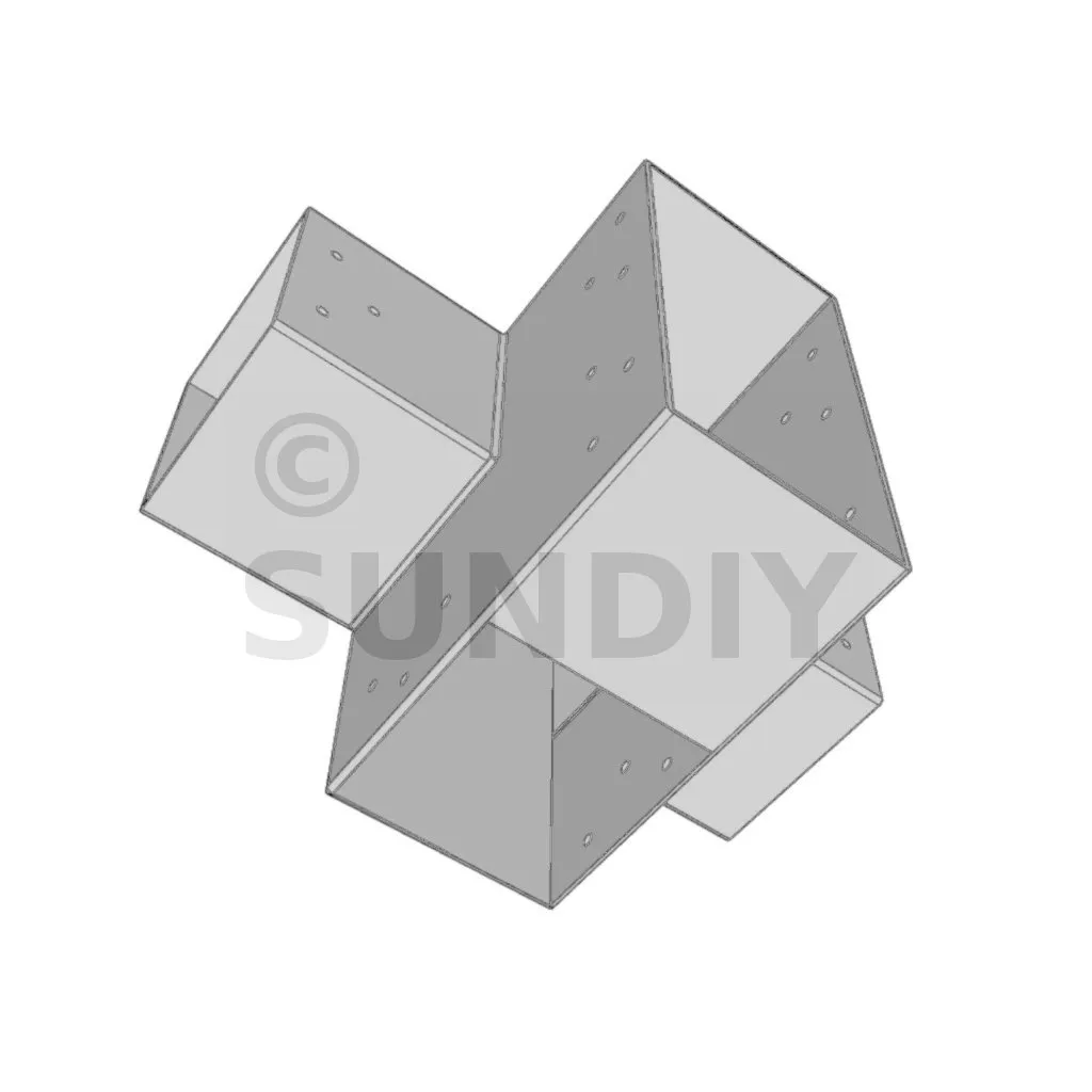 Il permet de raccorder deux poutres 120x120mm perpendiculairement à une grosse poutre 240x120mm, le tout étant supporté par un poteau vertical 120x120mm.