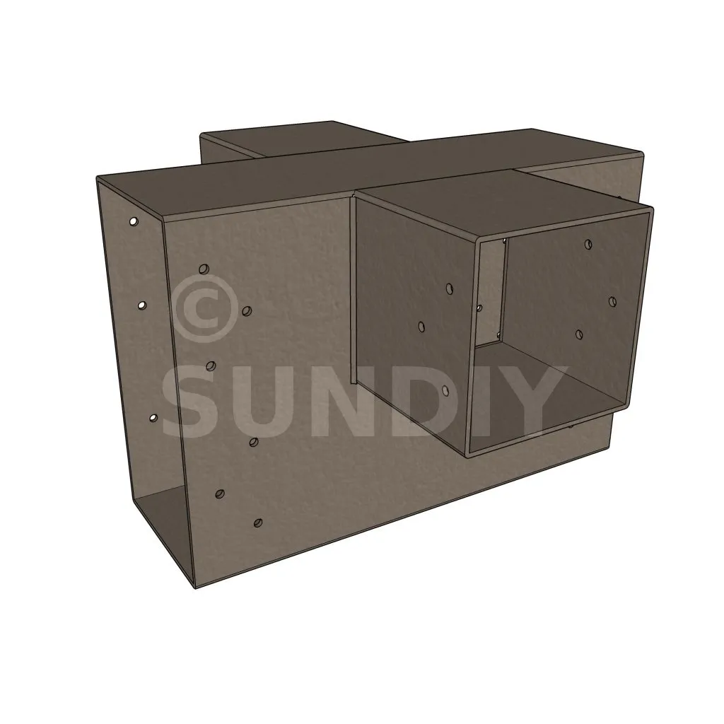 Il permet de raccorder deux poutres 120x120mm perpendiculairement à une grosse poutre 240x120mm, SANS être soutenu par un poteau vertical.