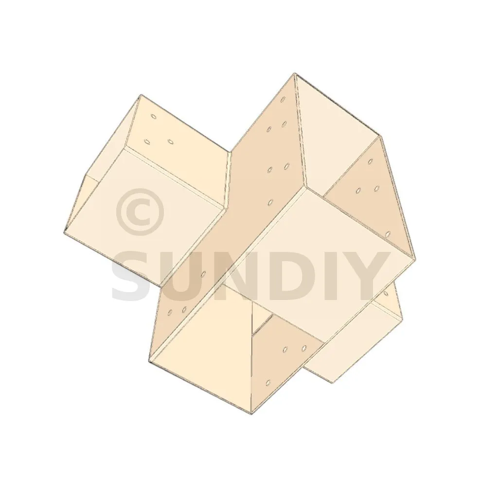 Il permet de raccorder deux poutres 120x120mm perpendiculairement à une grosse poutre 240x120mm, le tout étant supporté par un poteau vertical 120x120mm.